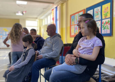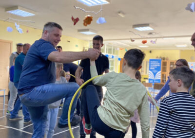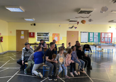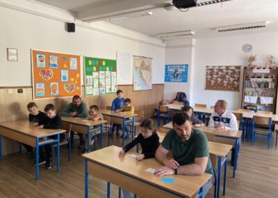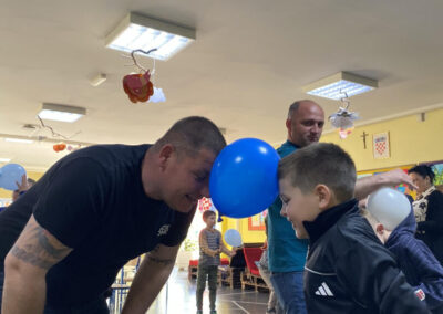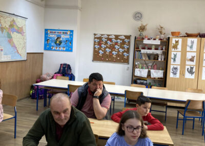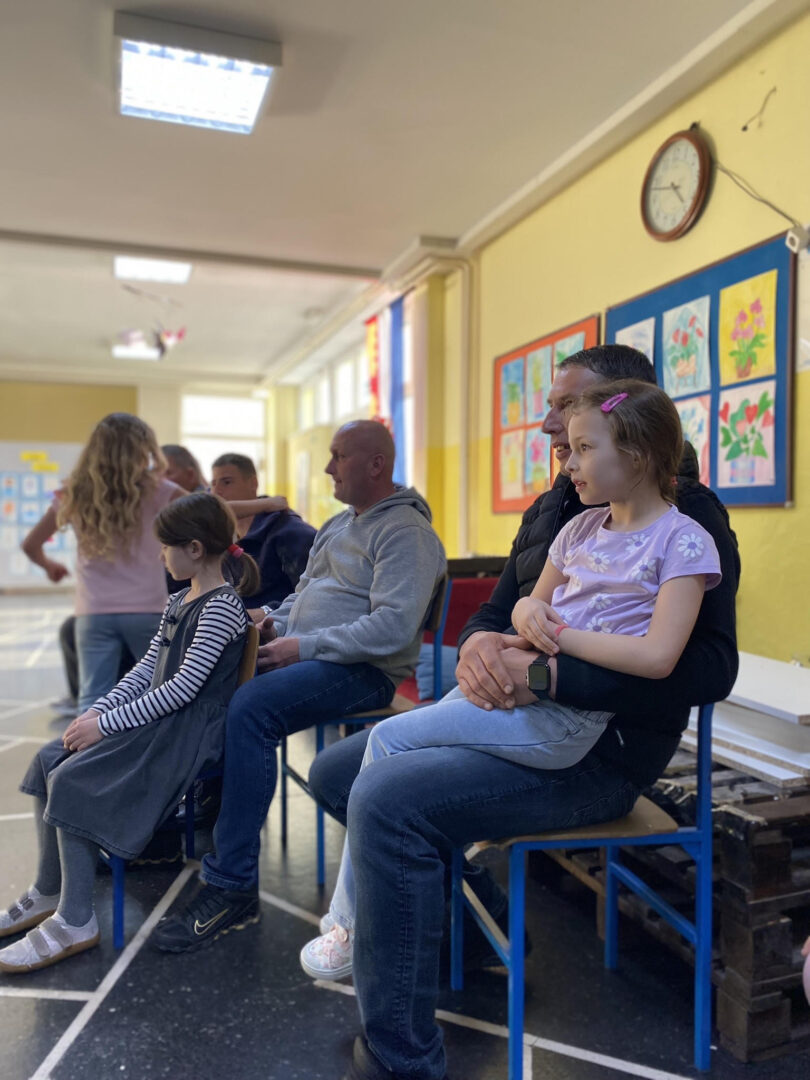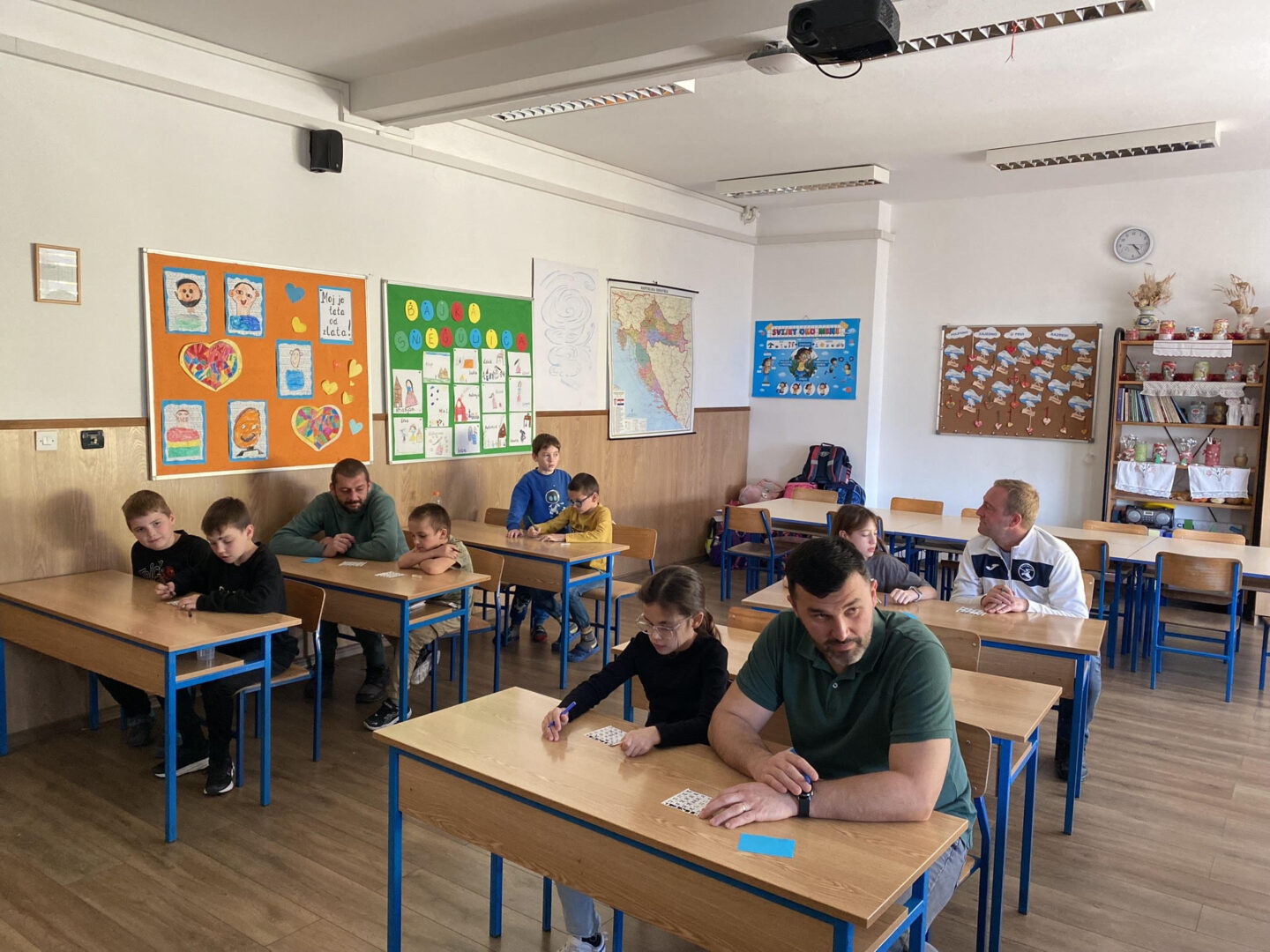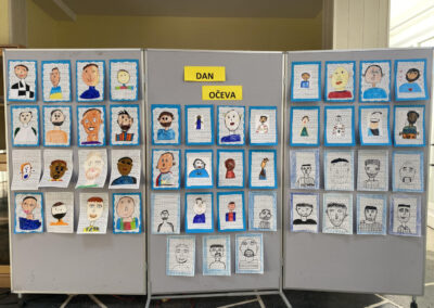 U znak zahvalnosti, učiteljice razredne nastave i učitelj engleskog jezika, pripremili su bogat program. Hol škole bio je prigodno ukrašen, a posebnu pažnju privukla je izložba portreta očeva koje su izradili učenici. Tate su se s osmijehom prepoznavale na crtežima i zajedno s djecom uživale u ovom toplom i emotivnom trenutku. Osim toga, organizirano je nekoliko veselih i dinamičnih aktivnosti u kojima su sudjelovali očevi i djeca, dodatno jačajući njihovu povezanost i zajedništvo. Okušali su se u glazbenim aktivnostima, prepoznavanju brojeva te sportu. Bilo je puno veselja i smijeha, navijanja ali i rada. Naime, gost događaja bio je stolar, bivši učenik učiteljice Katice, koji je prezentirao svoj rad i djecu oduševio.