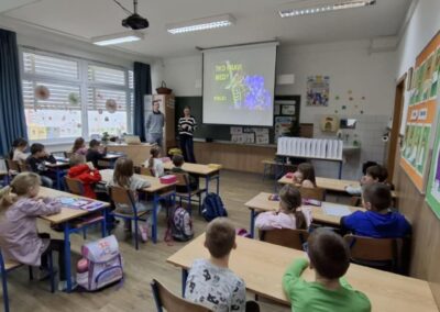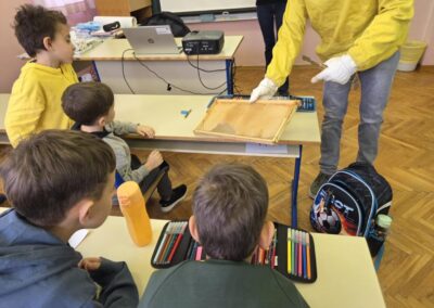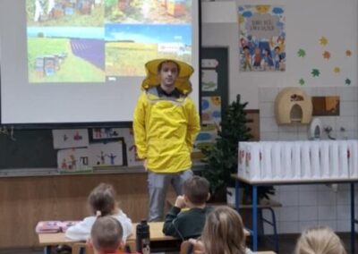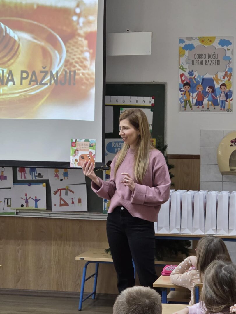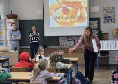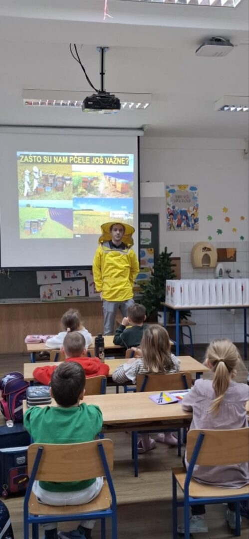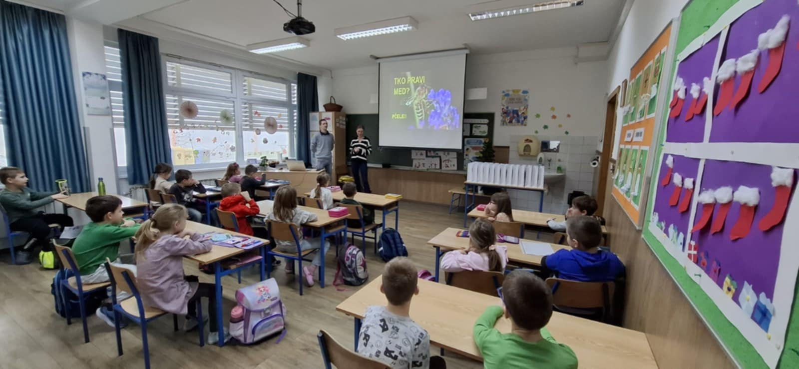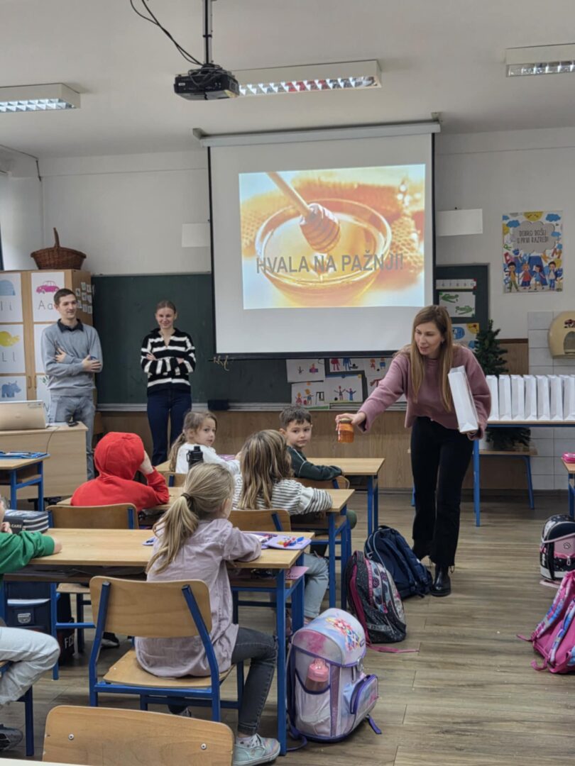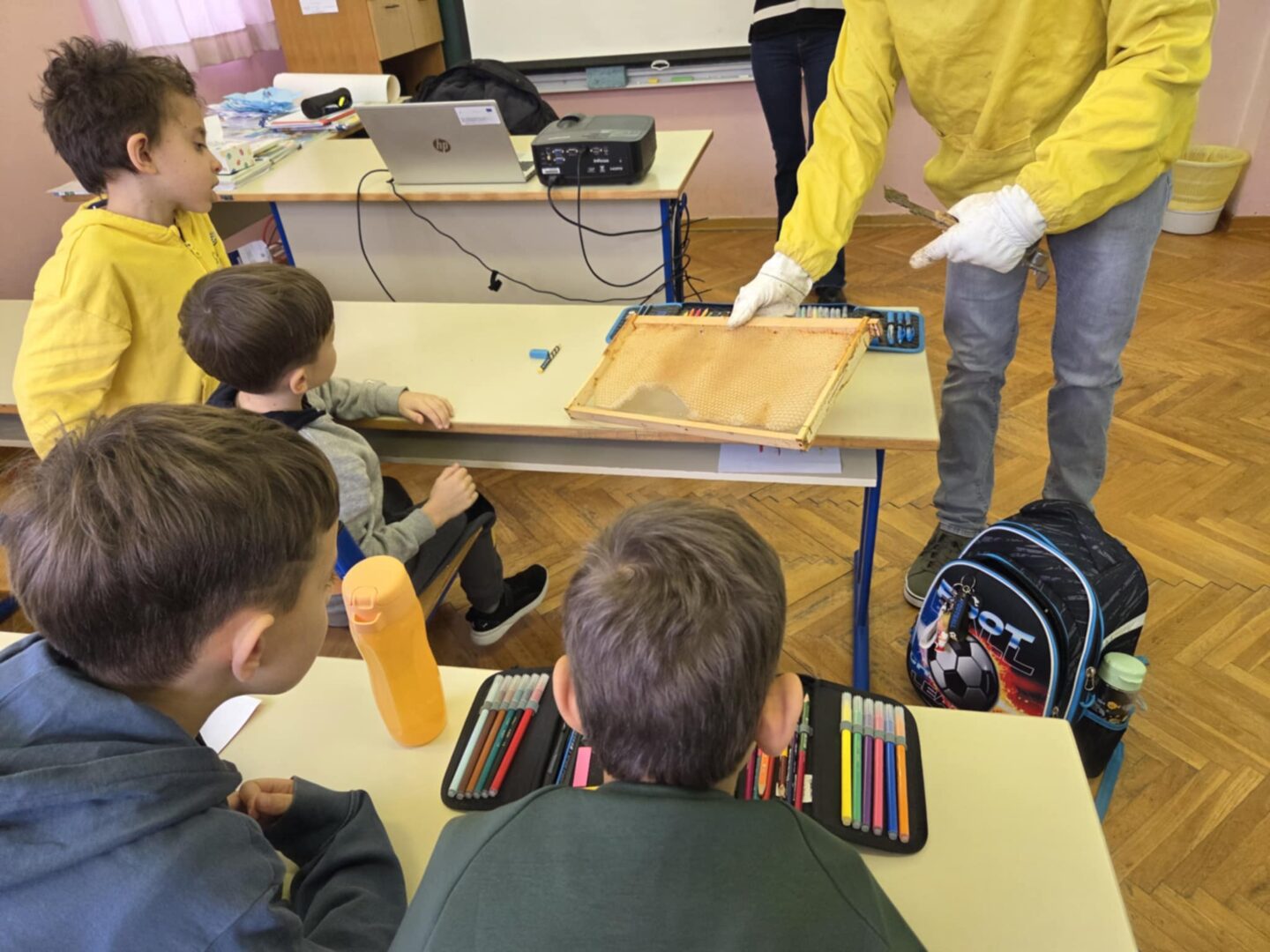 Naši prvašići sudjelovali su u zanimljivom i poučnom susretu s pčelarima Zvonimirom i Mihaelom iz Udruge Pčela, koji su im pokazali osnovnu pčelarsku opremu te govorili o važnosti pčela, meda i života u košnici. Učenici su saznali brojne zanimljivosti – koliko dugo pčele žive, čime se hrane i kakvo im je vidno polje.
