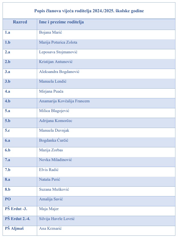 Popis članova Vijeća roditelja, rujan 2025. godine